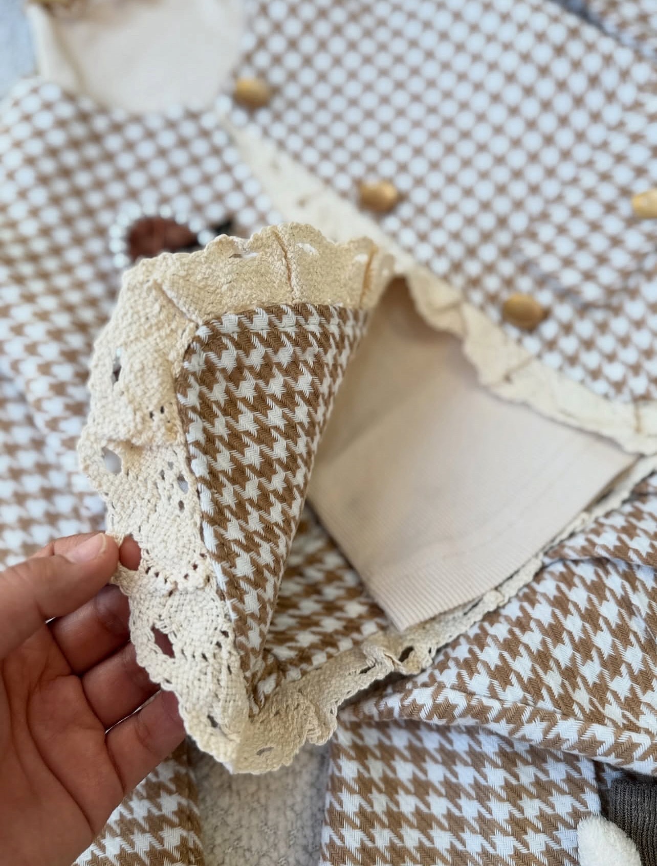 سایز ۵۰ قدتاپ ۳۸ قدکت ۳۶ پهنا ۳۴ آستین ۳۸ دامن ۳۸